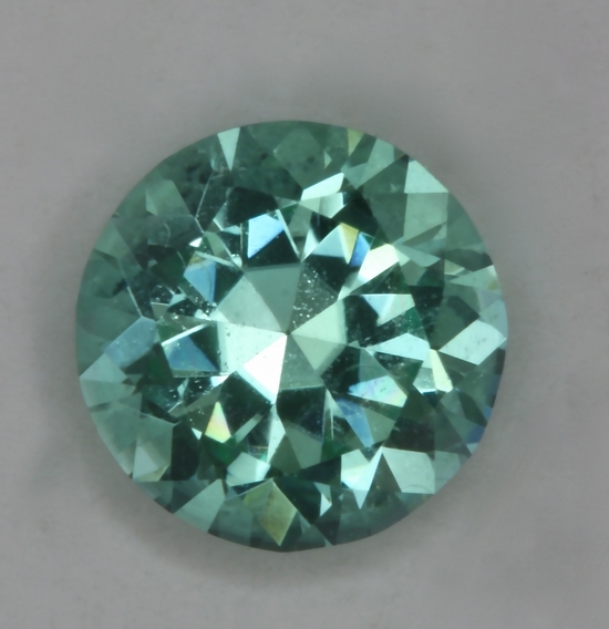 This medium toned blue shifts to more green than expected under the yellowish light. But boy does it love incandescent light. So we will call it a blue green pastel, droplet of color, with visions of greatness, because it drinks in color as the day slips away. It appears to be eye clean and crystal bright. It weighs .82 carats.