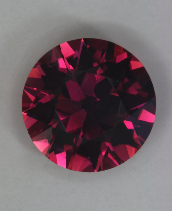 A flatter crown helps this standard round brilliant stay flashy with a darker toned pink with purplish highlights, color. It appears to be eye clean and with fine crystal. It weighs 2.72 carats.