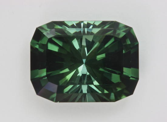 If there is any color that tourmaline completely covers from the blue end to the yellow end it is green. The eye is very sensitive to differences in green and tourmaline caters to that ability extremely well. Therefore it is a pleasure to say that this gemstone is just a little bit different and earned its description of spruce, only after a significant period of deliberation. It is a pretty classy tourmaline that just would not have made it up the social ladder without the cut.